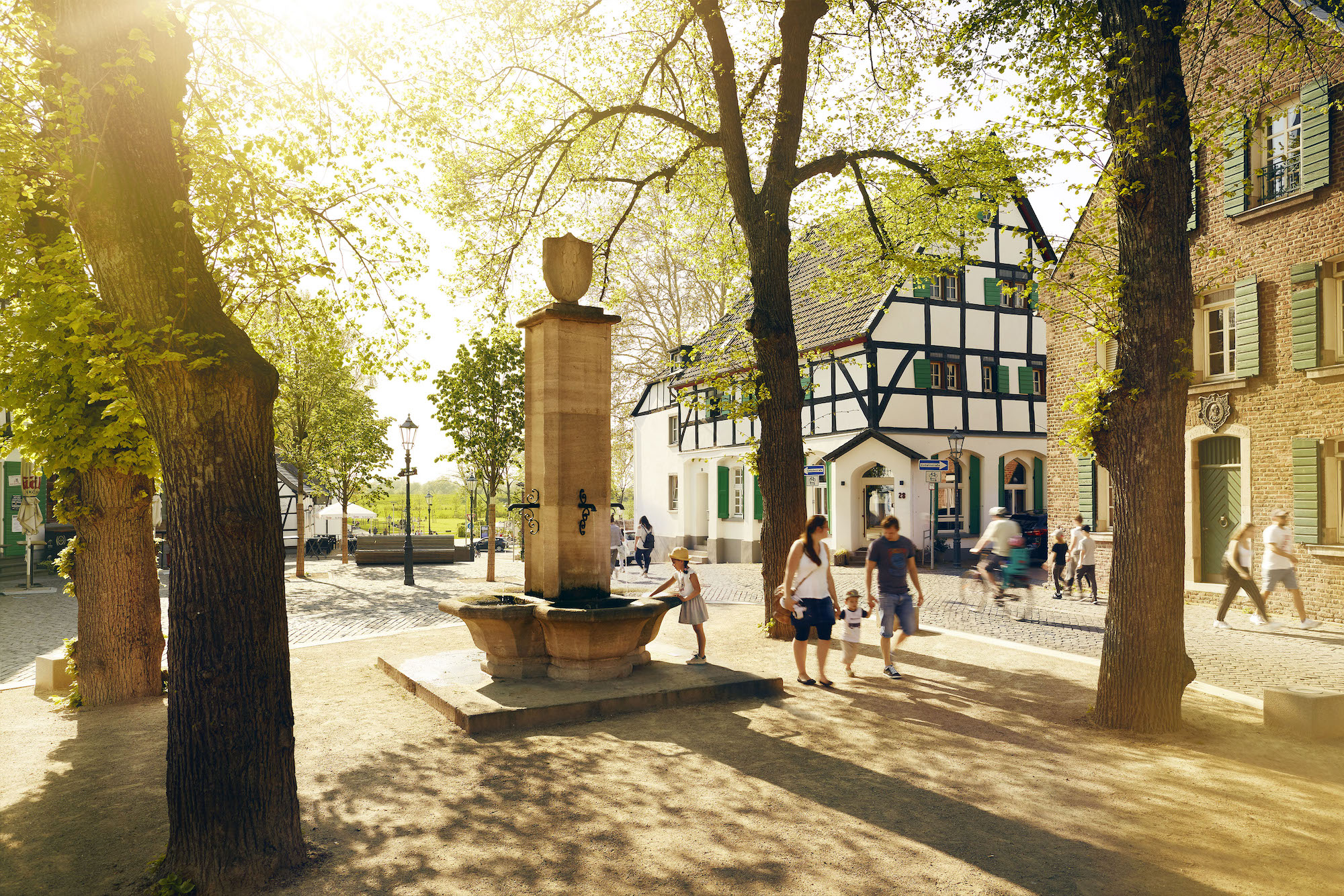 Wer es ruhiger mag, findet im Naturschutzgebiet Urdenbacher Kämpe die perfekte Auszeit. Dort liegt das ehemalige römische Kastell Haus Bürgel, heute Teil des UNESCO-Welterbes „Niedergermanischer Limes“. Im angeschlossenen Museum tauchst du in den Alltag der römischen Legionen ein – drumherum erwartet dich pure Naturidylle mit Rad- und Wanderwegen. Für Familien gibt’s zudem Action am großen Wasserspielplatz im Rheinbogen – hier glänzen Kinderaugen garantiert.